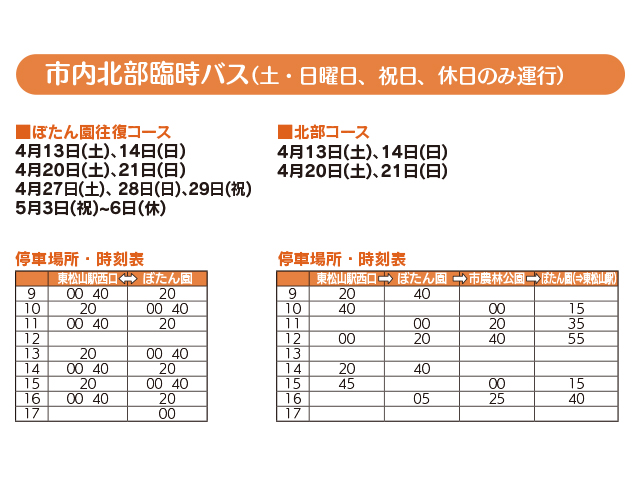 市北部の観光に便利な臨時バスを下記日程で東松山駅西口から運行します。