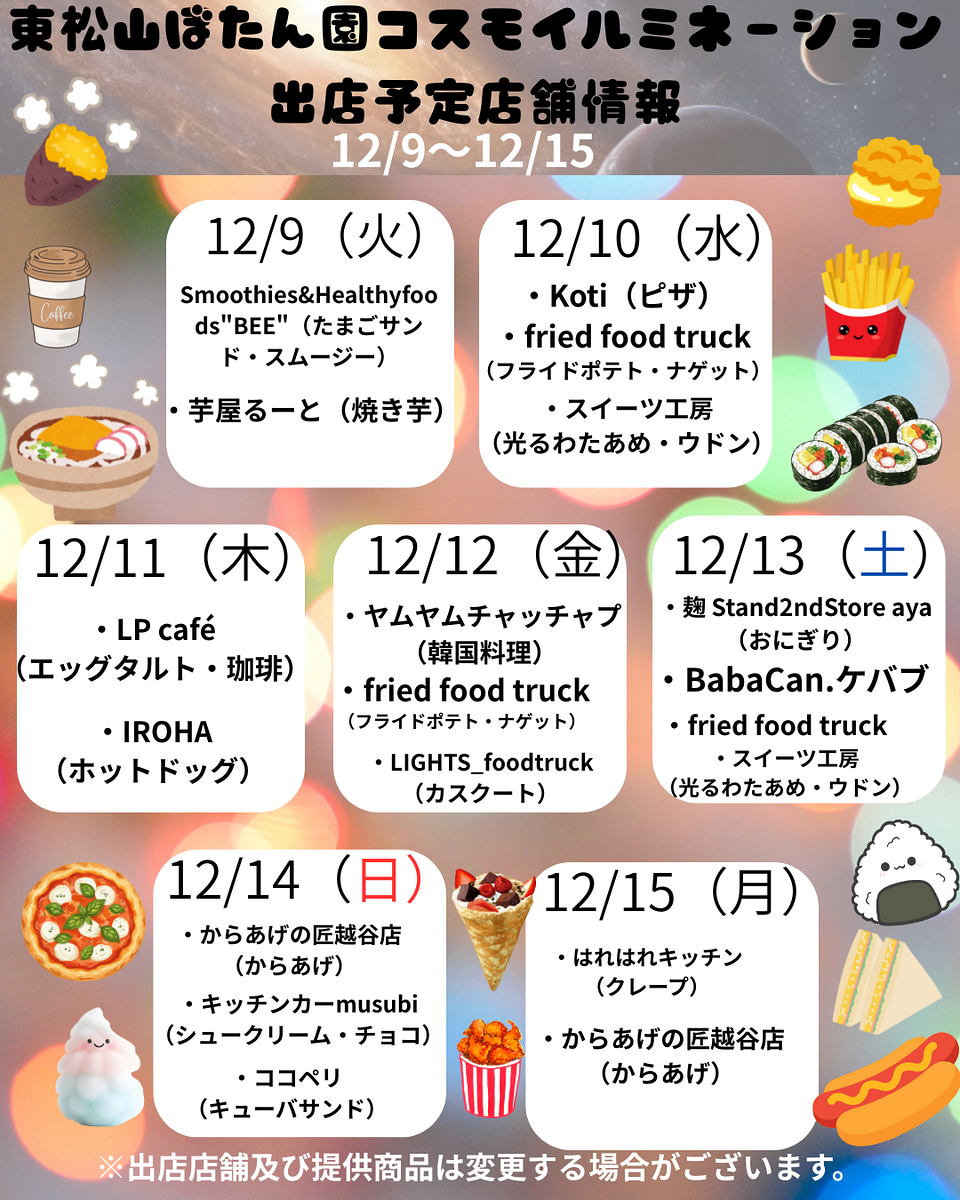 ■ 出店スケジュール(12/9~12/15)