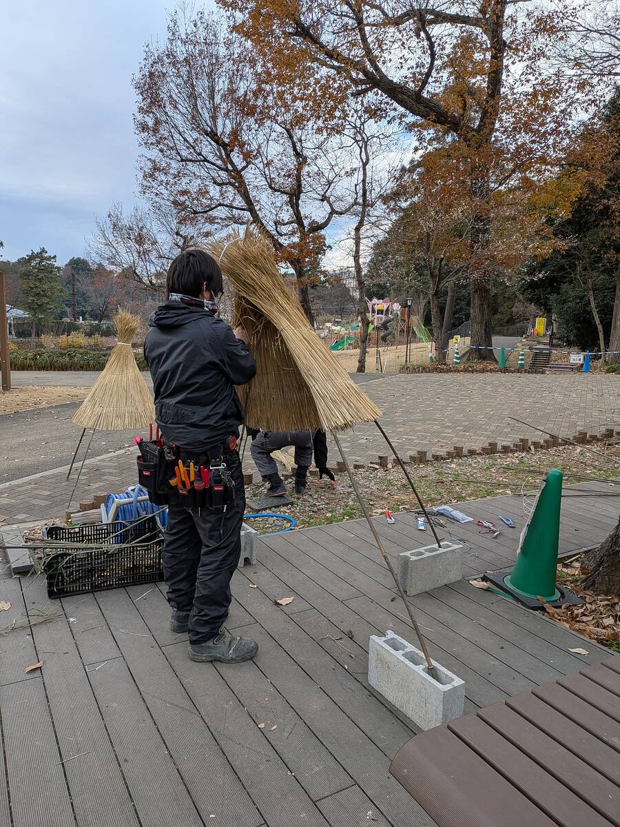 ボタンは通常春に咲きますが、特別な温度管理により開花させ、”藁ぼっち”を被せて展示します。